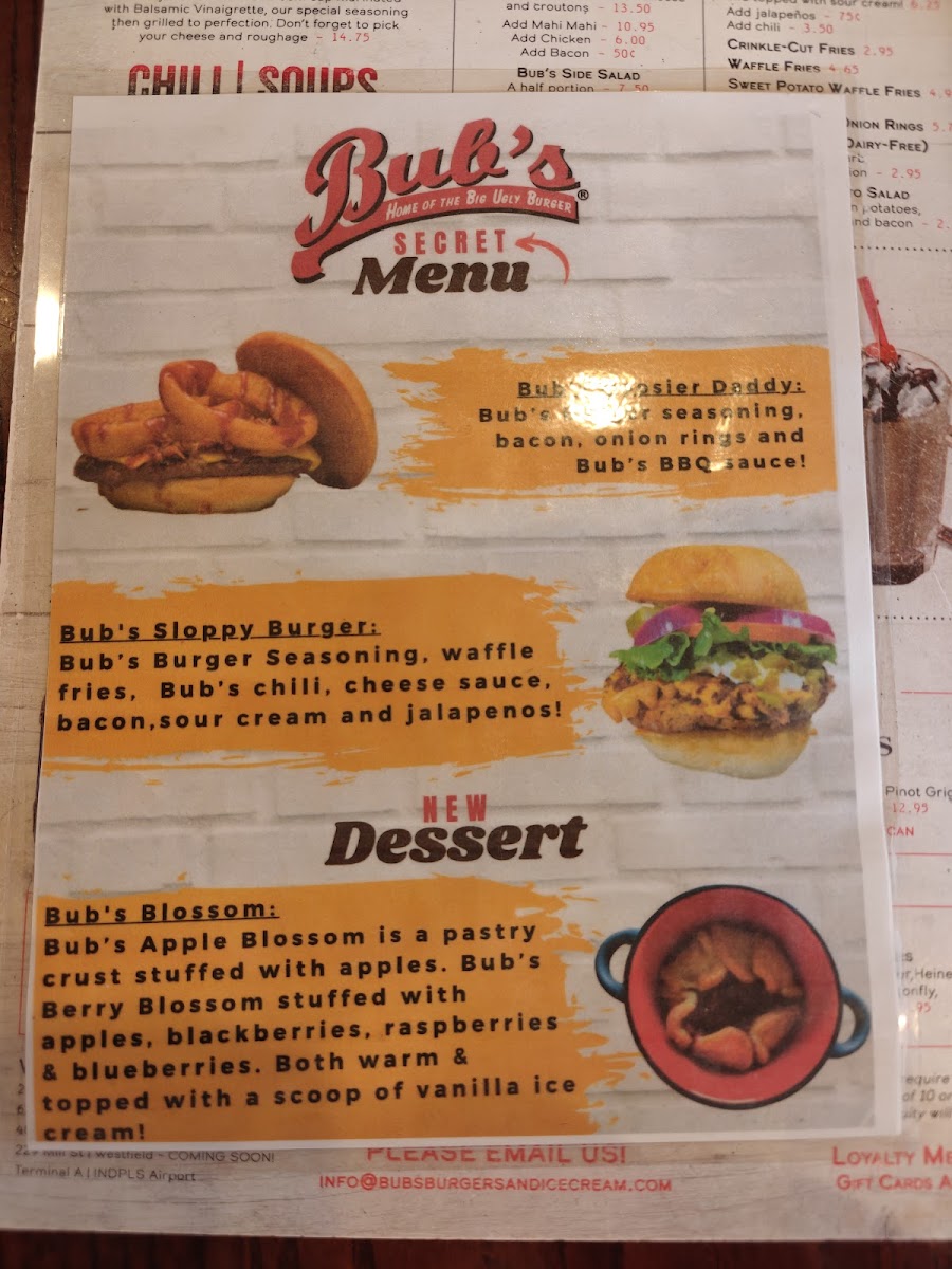 Bub's Settle for Less Ugly Burger is a QUARTER POUND after cooked! 100%fresh, never frozen, ground chuck that is hand-pattied every morning! Then is perfectly seasoned with Bub's secret seasoning and charbroiled over flame. Every morning we bake all of our own burgers buns!!